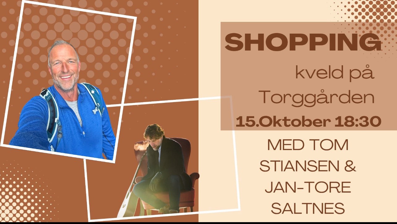 Gjør deg klar for en kveld utenom det vanlige. Torggården inviterer til en stemningsfull og inspirerende Shoppingkveld full av opplevelse, overraskelser og unike tilbud i butikkene våre. Tom Stiansen, kjent fra 71 grader nord og tidligere toppalpinist kommer og holder et engasjerende foredrag. I tillegg blir det musikalsk magi med Jan- Tore Saltnes kjent fra Nordic Tenors. Dette blir en kveld du ikke vil gå glipp av. Fri entre.